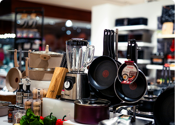 Food and beverages include fresh produce, snacks, drinks, dairy, meats, packaged foods, and both alcoholic and non-alcoholic options.